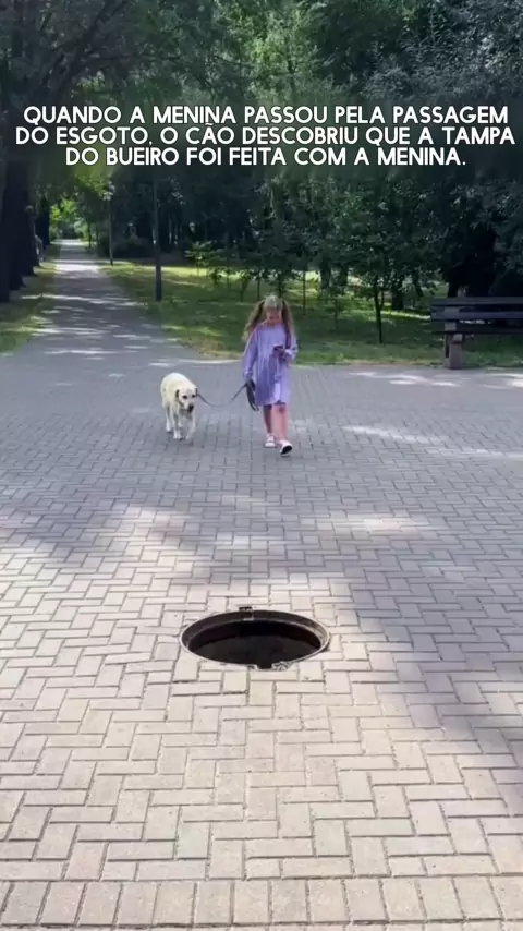 Quando a menina passou pela entrada do esgoto, o cão descobriu que não havia tampa de bueiro e fez um sinal de alerta com a menina # Tudo é espiritual.