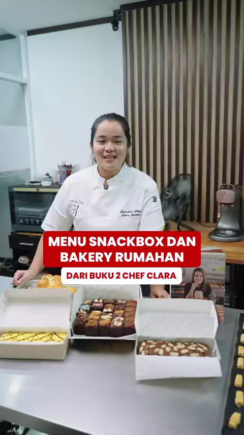 MENU SNACKBOX & BAKERY RUMAHAN DARI BUKU 2 CHEF CLARA ๐Ÿ“˜๐Ÿž Buat yang lagi nyari ide jualan rumahan, menu-menu ini bisa langsung dipraktekin ๐Ÿ‘€โœจ Semua ada lengkap di Buku 2 akuuu ada roti sobek, roti sisir, donat, brownies, sampe aneka chiffon juga adaa, yukk intip isi lengkapnya di bio akuu yaa!