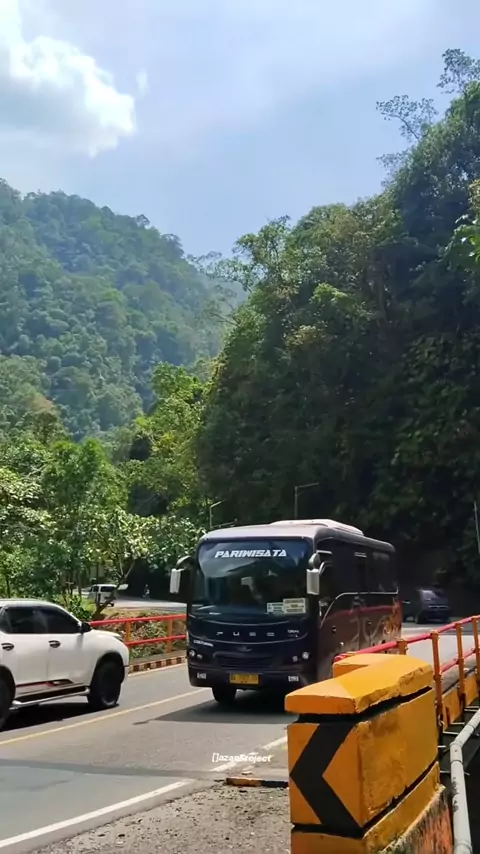 Bus pariwisata melintasi jembatan hutan lindung lubuk bangku #buspariwisata #busmania #buslover #busakap #ayonaikbus #