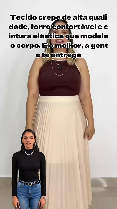 Saia Plissada Midi: Estilo e Conforto com Entrega Rápida! #saiaplissada #modafeminina #modaelegante #lookdodia #kwai