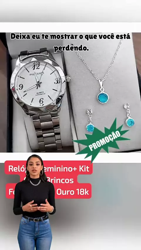 Relógio + Kit Folheado a Ouro: Elegância e Preço Incrível! #relogiofeminino #folheadoaouro18k #kitdecolar #modafeminina #acessorios
