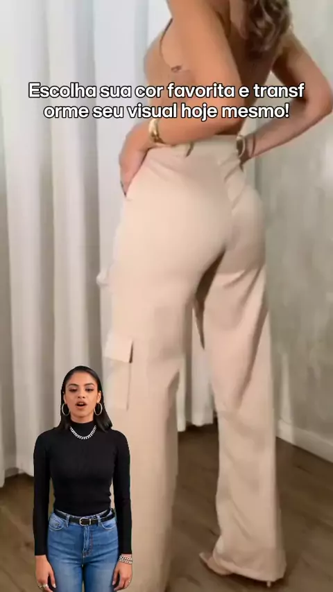 Transforme seu estilo com a calça que une conforto e elegância #ModaFeminina #CalçaPantalona #EstiloEConforto #AlfaiatariaCargo #LookVersátil