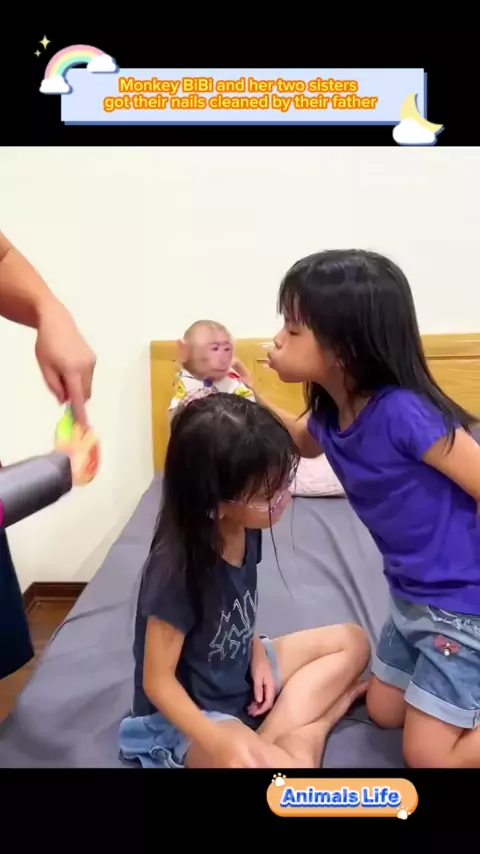 Macaco Bibi e suas duas irmãs têm suas unhas limpas por seu pai # macaco # monkeybibi # animais # animal de estimação # macacos # animais de estimação # animal