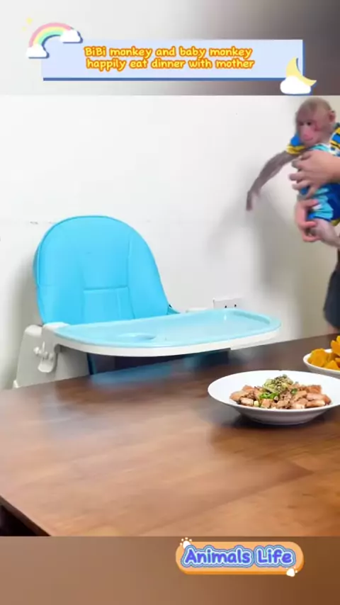 Macaco bibi e bebê macaco felizes comem o jantar com a mãe # monkey # babymonkey # monkeybibi # animais # animal # pet # pets