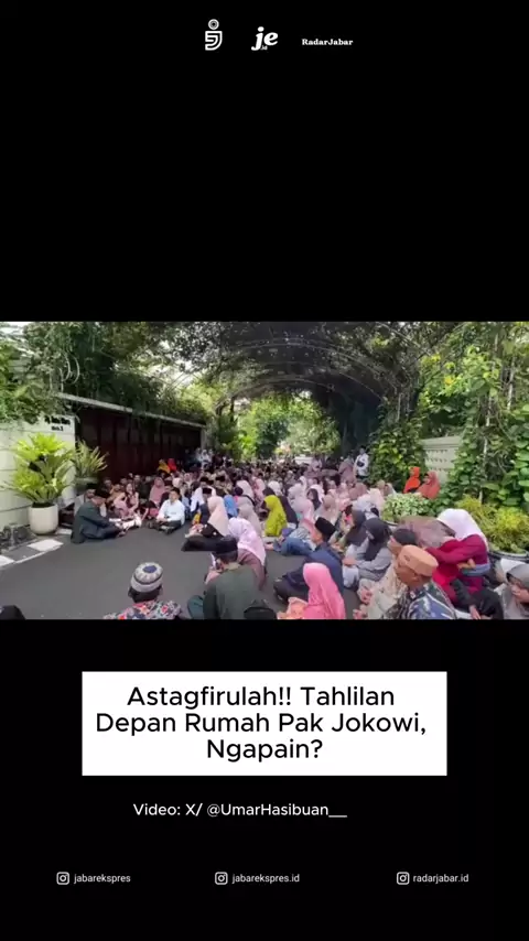 Viral sebuah video yang memperlihatkan sekelompok warga menggelar tahlilan di depan rumah Joko Widodo. Rekaman berdurasi 1 menit 17 detik itu diunggah melalui akun X milik kader PKB, Umar Hasibuan, pada Jumat (13/2). Dalam video tampak beberapa orang duduk bersila di depan kediaman Jokowi. Disebutkan, rombongan tersebut merupakan warga Brebes yang datang ke rumah Jokowi di kawasan Sumber, Solo. Menanggapi unggahan itu, Umar Hasibuan mengaku heran dan mempertanyakan alasan mereka menggelar tahli...