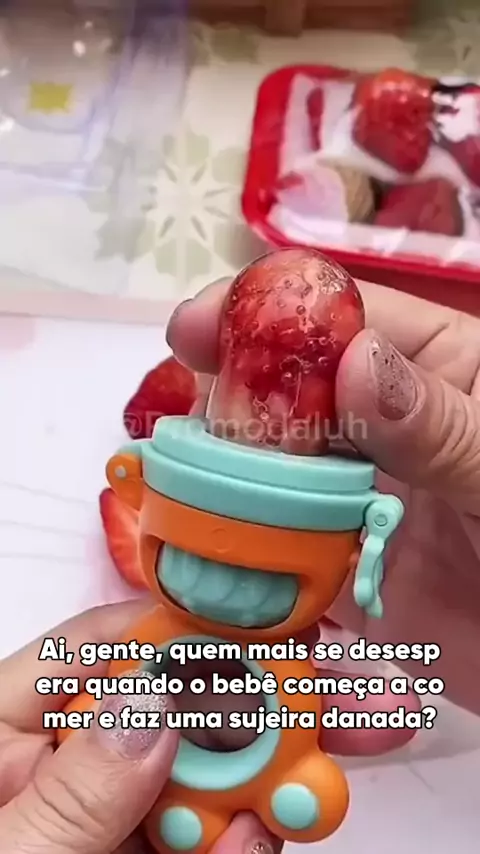 Adeus, sujeira! Alimentador de chupeta Pimpolho: frutinhas sem bagunça! #alimentacaoinfantil #bebevidasaudavel #pimpolho #introducaoalimentar #maedemenino