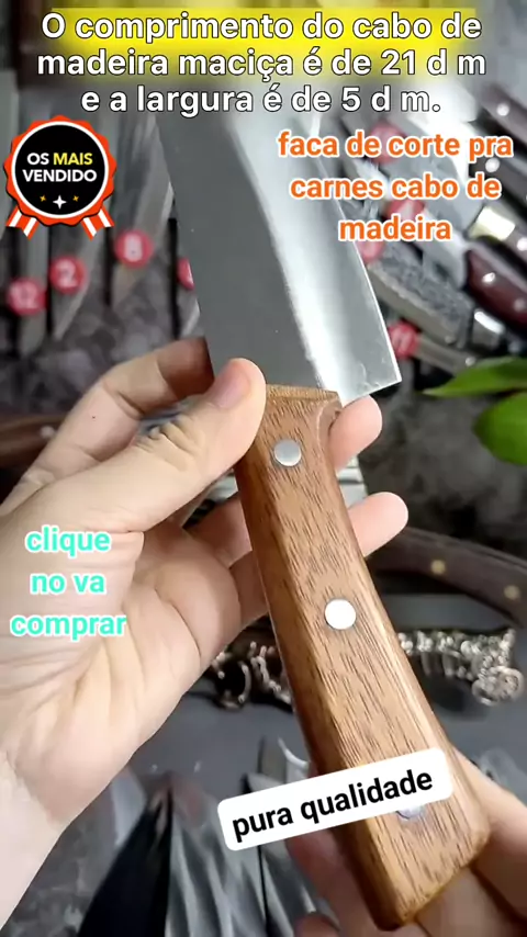 Faca de corte pra carnes com cabo de madeira em inox resistente #kwaishop #BlackFriday #seiquetumeodeia