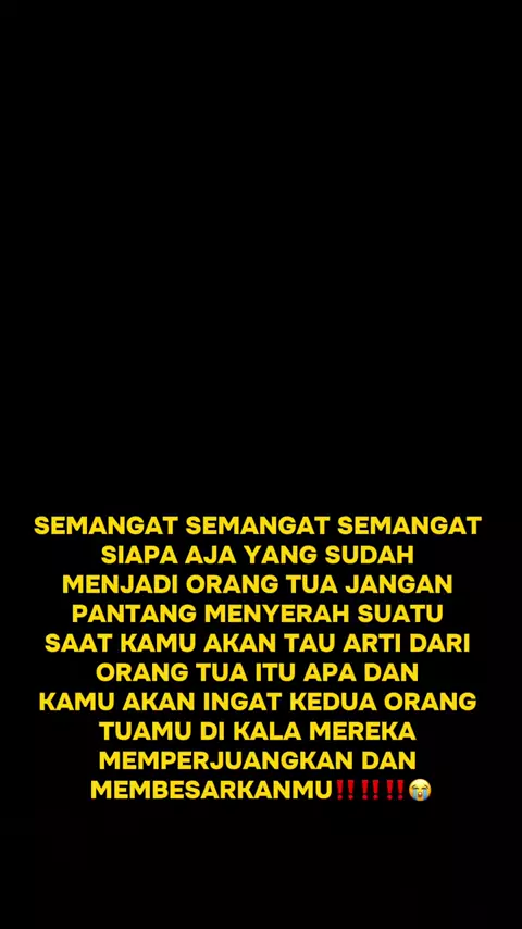 #SEMANGAT SEMANGAT SEMANGAT SIAPA AJA YANG SUDAH MENJADI ORANG TUA JANGAN PANTANG MENYERAH SUATU SAAT KAMU AKAN TAU ARTI DARI ORANG TUA ITU APA DAN KAMU AKAN INGAT KEDUA ORANG TUAMU DI KALA MEREKA