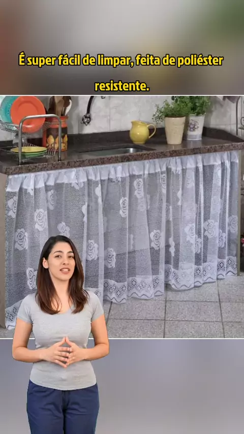 Adeus, pia sem graça! ✨ Cortina de renda que transforma sua cozinha! #cortinadepia #cozinhacharmosa #renda #decoracao #jcm