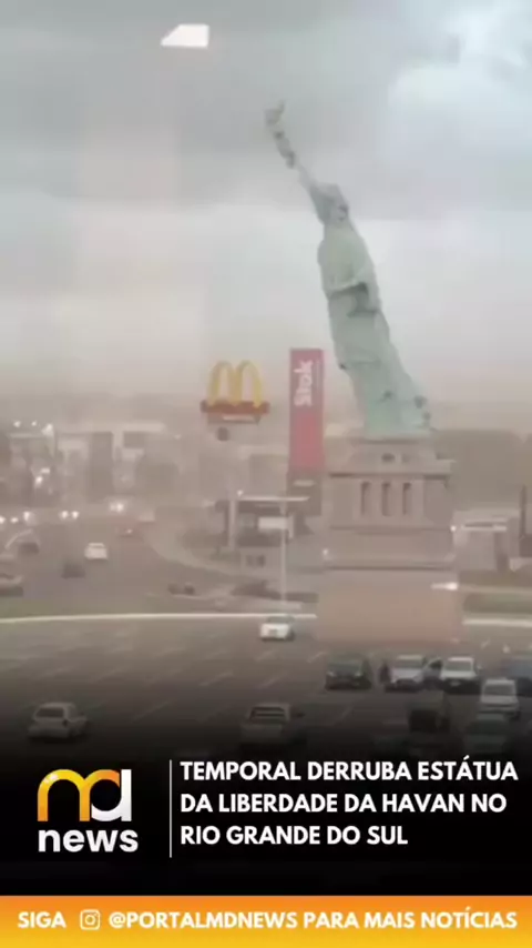 vendaval derrubou a Estátua da Liberdade da Havan no Rio Grande do Sul