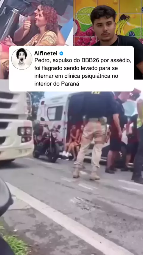 Pedro, expulso do BBB26 por assédio, foi flagrado sendo levado para se internar em clínica psiquiátrica no interior do Paraná.
