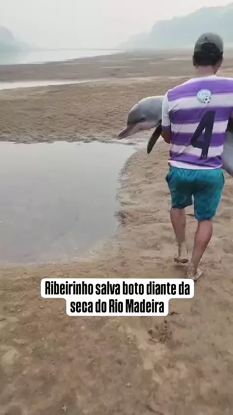 Homem resgata boto 🐬 em situação crítica, carregando-o até o outro lado de uma ilha 🏝️ para salvá-lo da desidratação 💧, mostrando um gesto incrível de compaixão e amor pelos animais 😍. Deixe sua opinião. #CarnaKwai #maisviews #caminhada #2025internationalshortvideocompetition