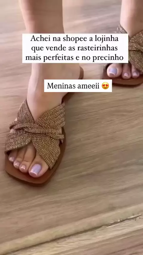 Rasteirinha feminina de Couro Brilho com Strass
