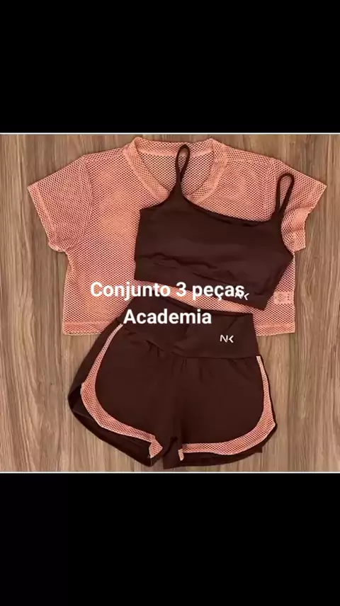 Conjunto 3 peças short duplo Cropped e camisa