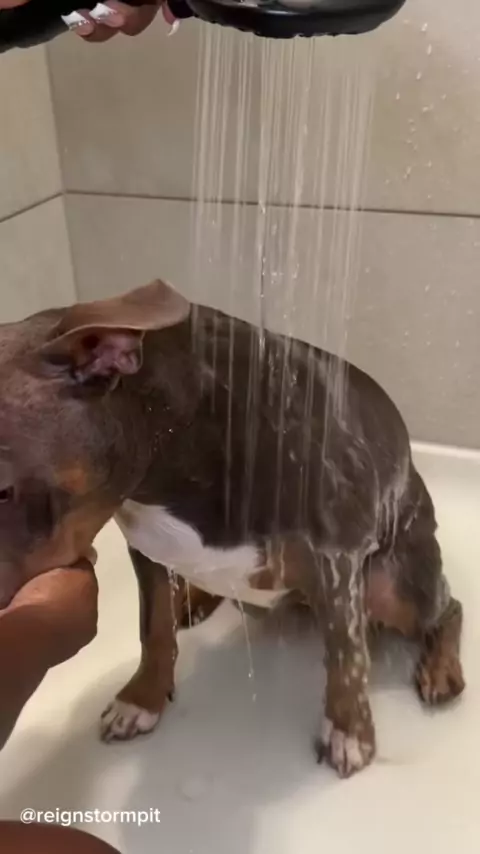 Snoh Storms Puppy Bath Routine#dogsof#dogcare#doggrooming#dogbath#bath#puppy#cute#pitbull#asmr#asmrsounds#satisfying#viral