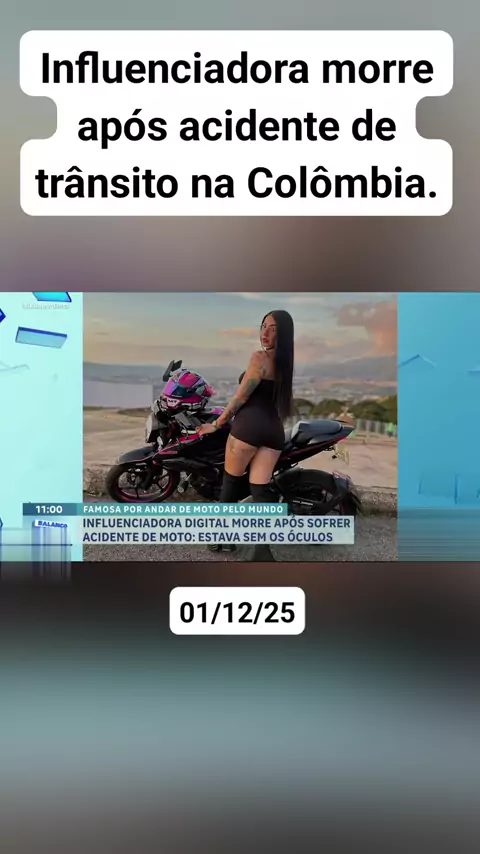 Influenciadora morre após acidente de trânsito na Colômbia. #noticias #RecordTV #sejareporterdokwaisports