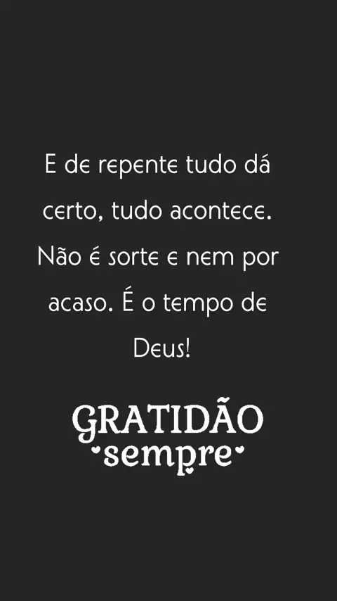 E de repente tudo dá certo, tudo acontece. Não é sorte e nem por acaso. É o tempo de Deus!