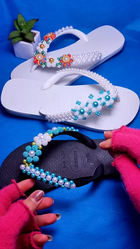 sandália personalizada com pérolas #artesanato #DIY