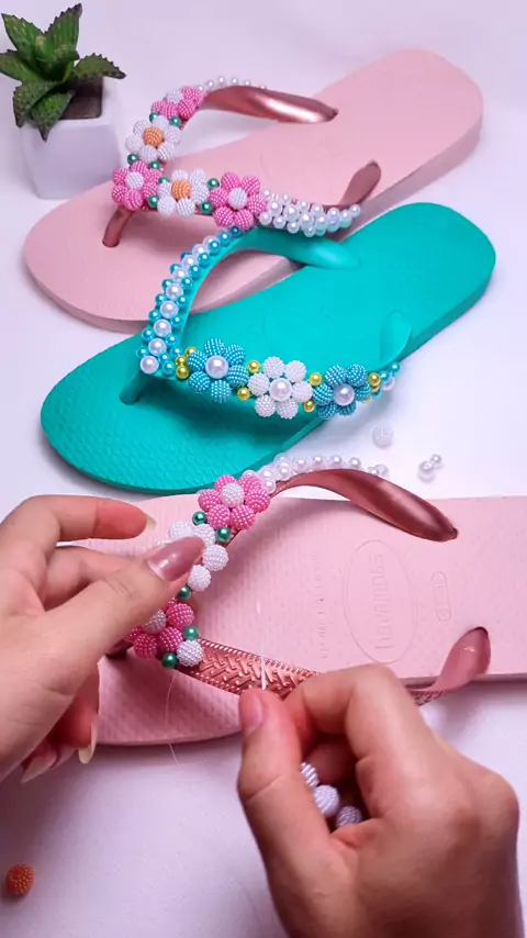 sandália personalizada com pérolas #artesanato #DIY