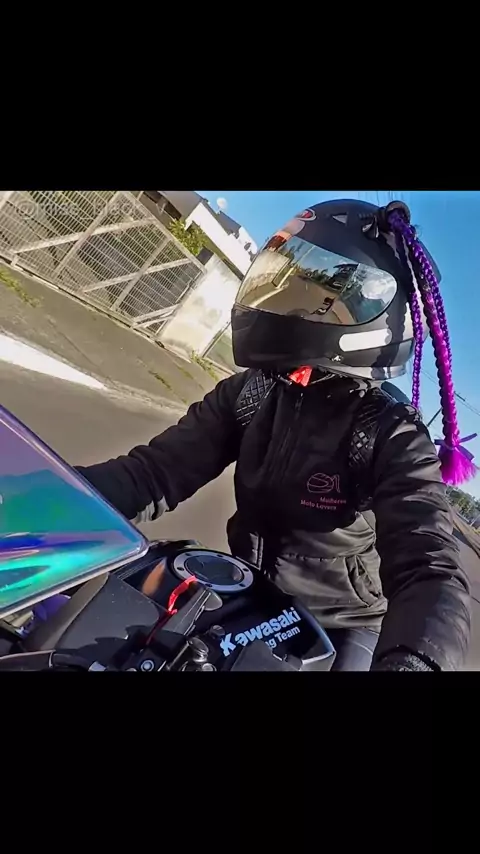 A menina das tranças no capacete, se você ama motos esse perfil é pra você 💜🏍️💜