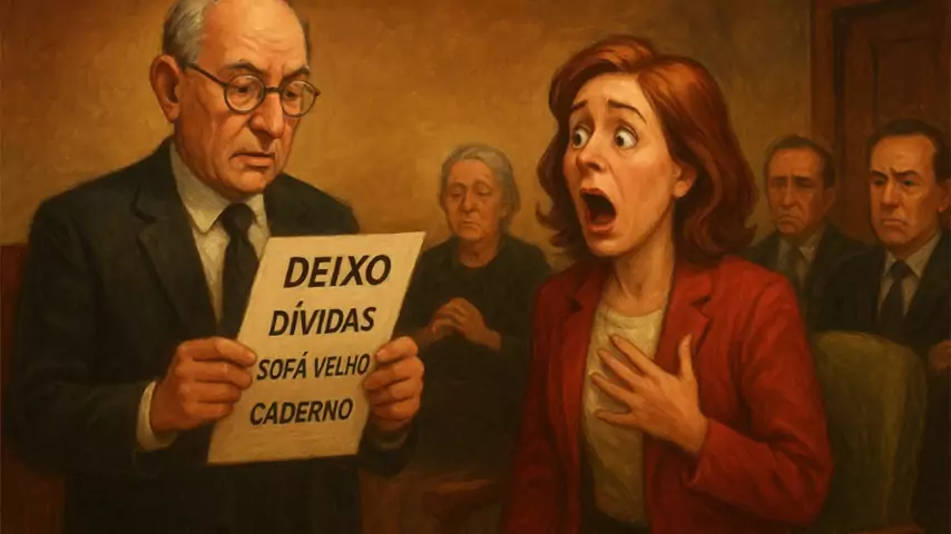 3. A Leitura do Testamento 📜 “Advogado sério, Carla chocada e… plot twist: herança é só o caderno de promessas e o sofá da sala. Nem o pó de café sobrou.” #TestamentoFail #HerançaDoSofá #PromessasNoCaderno #AdvogadoDeNovela #CampanhaDoBrega