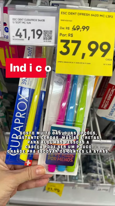 Dica da Dentista: Escova Boa e Barata! Gente, deixa eu dar uma dica de coração aqui pra vocês… Eu sei que a Curaprox é maravilhosa, isso ninguém discute. É uma escova excelente, super macia e muito confortável. Mas… eu sei também que o preço dela pesa, principalmente quando a gente precisa comprar para a família inteira, né? Não é só uma escova — é a sua, a do filho, a do marido… e aí o valor dobra, triplica, e fica difícil. E nesses últimos dias eu estou testando uma escova da dfresh !