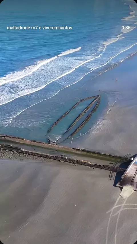Veleiro KESTREL encalhado em santos ,mas na mare baixa conseguimos ver seu esqueleto #veleiro #kestrel #marebaixa #LadoBKwai #naviopirata