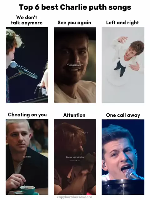 top 6 best Charlie puth songs #charlieputh #wedonttalkanymore #leftandrightchallenge #attention # #seeyouagain #cheatingonyou