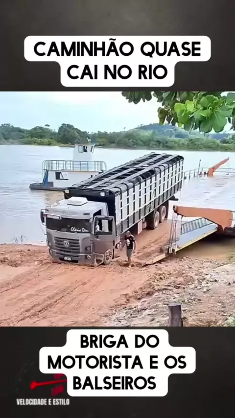 Caminhão quase cai no rio. #balsa #caminhao #carreta