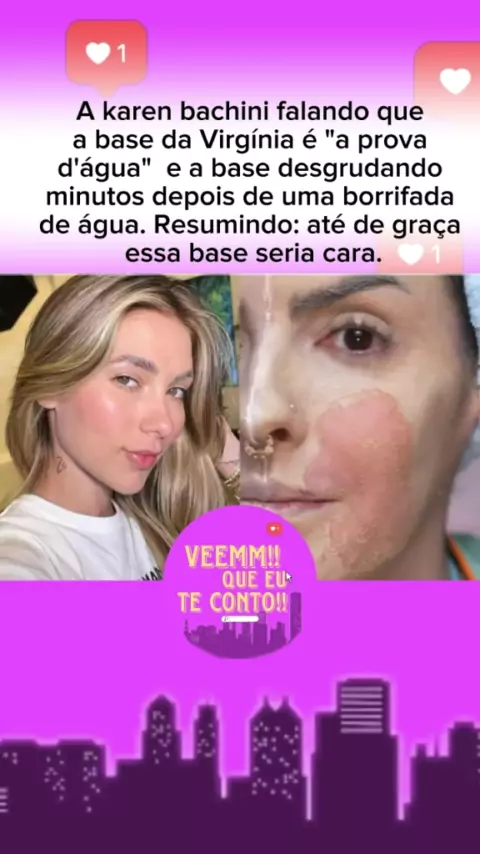 A Karen bachini falando que a base da Virgínia é "a prova d'água" e a base desgrudando minutos depois de uma borrifada de água Resumindo: até de Graça essa base seria cara. #fofocas #noticisas #Virginia #karenbachini