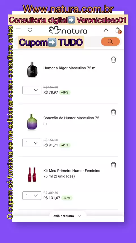 Consultoria digital➡️Veronicaleao01⬅️ Antes de finalizar sua compra no site da Natura adicione a consultora, depois o cupom en GANHE MUITO DESCONTO!