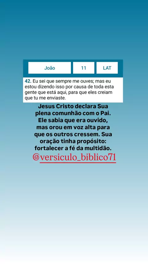 A comunhão entre o Pai e o Filho é perfeita, e o agir de Deus visa gerar fé nas pessoas. Que a paz esteja com todos, amém 🙏🏻