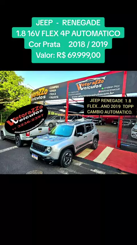 JEEP  -  RENEGADE 1.8 16V FLEX 4P AUTOMATICO Cor Prata     2018 / 2019 Placa: EEC0F68 Valor: R$ 69.999,00
