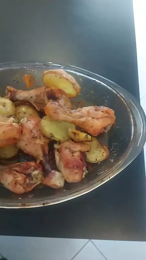 Frango com batata no forno + vinagrete caseiro 😍🔥 Quem encara um prato desse agora ? #frangoassado #batataassada #vinagretecaseiro #comidacaseira #receitafacil