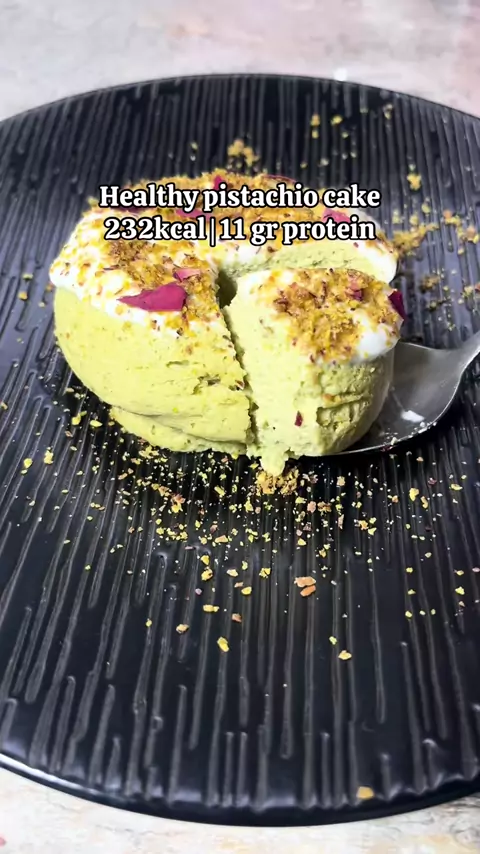 Siapa yang lagi tergila-gila sama pistachio💚 nih aku bikin pistachio cake versi healthier, tanpa tepung tanpa gula dan ada 11gr protein!!!