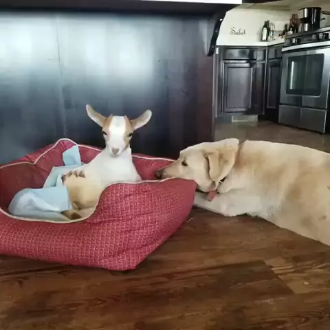 Making new friends despite differences #TrueLove #babygoat #cutedog #saleranchanimalsanctuary #animallove #animalfriends #cuteanimaltok #happyanimalvid (brankaivanovic321)