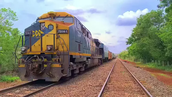 Graneleiro com três locomotivas AC44I 761, 785 e 2514 da Rumo 102 vagões vazios, passando pelo Km 118 em Cordeirópolis, sentido interior do Mato Grosso. Deixe seu Like e se inscreva, é muito importante para a nossa pagina crescer, faça parte do mundo da Ferrovia Brasileira... 30/01/26 #ferrovia #locomotive #buzinadetrem #trains #locomotivas