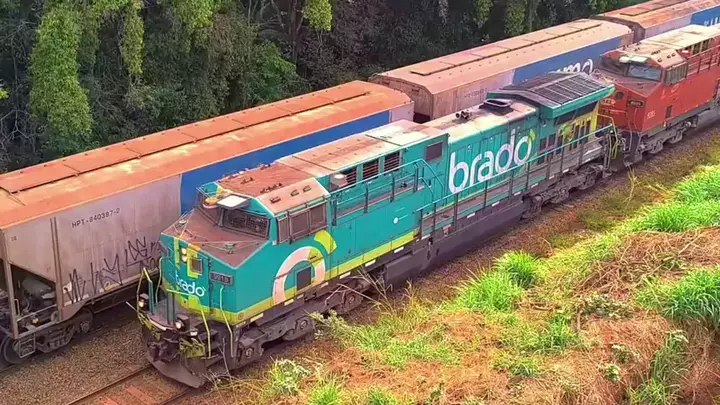 Composição mista, graneleiro e contêineres passando pela velha Estação de Cordeirópolis, a mesma está vindo do interior do Mato Grosso com três locomotivas AC44I, levando 40 vagões graneleiros e 68 vagões com contêineres, sentido Porto de Santos. Deixe seu Like e se inscreva, é muito importante para a nossa pagina crescer, faça parte do mundo da Ferrovia Brasileira... 08/02/26 #doublestack #contêineres #railfans #railways #railroad