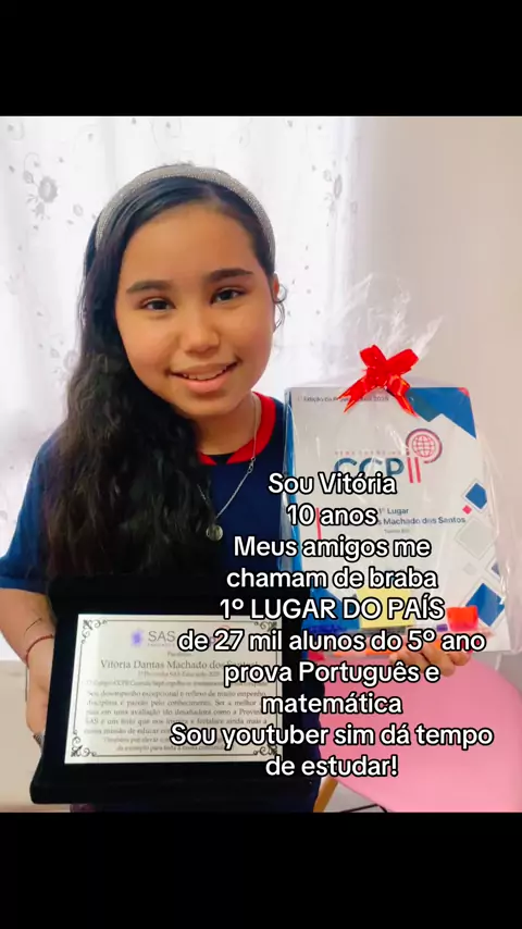 Sou Vitória 10 anos, meus amigos estão me chamando de “Braba” rss 1º LUGAR DO PAÍS provinha SASforam 27 mil alunos do 5º ano. Sou youtuber e sim dá tempo de estudar! #trend #prova