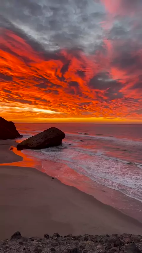 🌅 Nascer do sol colorido na praia selvagem de Monsul, cercada por falésias vulcânicas escuras no Parque Nacional de Cabo de Gata, Espanha. Baú de Fatos Incríveis #compartilhe💎 #tourism #viajante #foryou