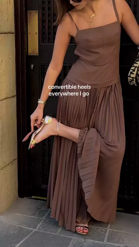 Convertible heels everywhere I go 👠🤎#convertibleheels#fashionhack#goldheels
