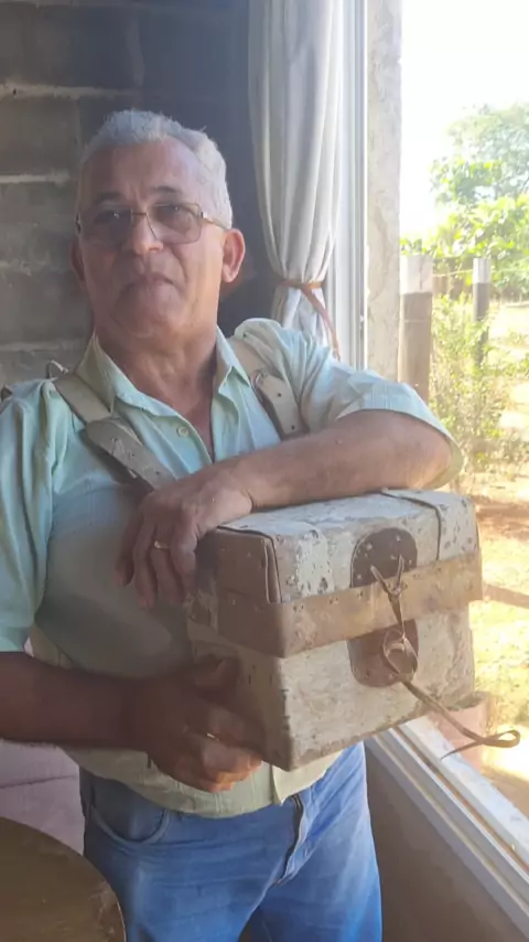 meu pai explicando a buraca de transporte na época dos tropeiros. estas buracas o avô do meu marido doou a ele.