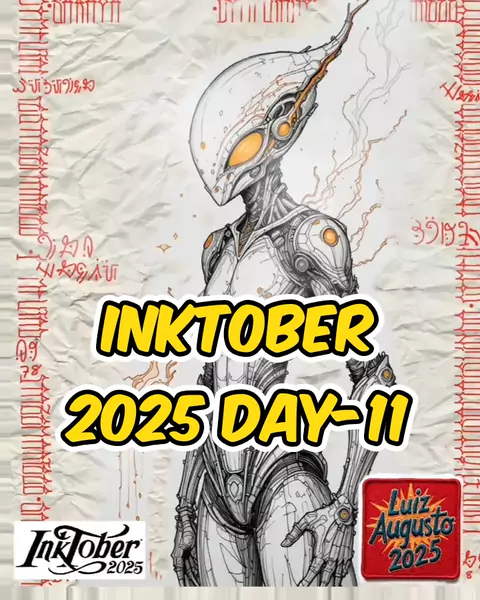 Inktober 2025 Day 11 - Sting! ⚡️👽💥 Today's prompt is STING! Not a bee 🐝, but a cybernetic alien! Would this sleek, robotic creature give you an energy sting? 👀 The art on the crumpled paper looks ominous! 👽 What's the name of this alien race? Send a name in the comments! 👇 #Viral  #inktober #inktober2025 #sting #alien