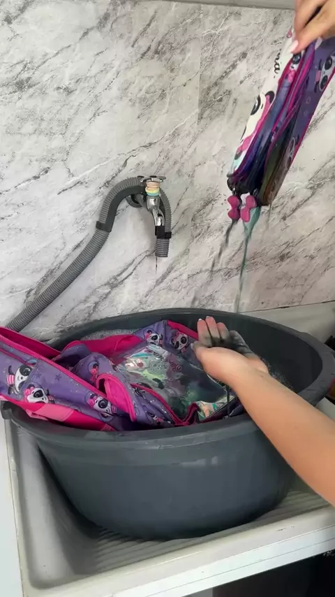 Lavando a mochila escolar da Luara 💜✨