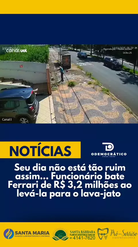 ✅NOTÍCIAS: Seu dia não está tão ruim assim… Funcionário bate Ferrari de R$ 3,2 milhões ao levá-la para o lava-jato – veja o vídeo! Se você acha que está tendo um dia difícil, imagine estar no lugar desse funcionário. Em Campinas (SP), um colaborador de uma concessionária perdeu o controle de uma Ferrari avaliada em R$ 3,2 milhões e bateu o supercarro antes mesmo de chegar ao lava-jato. O momento foi registrado por câmeras de segurança e está dando o que falar. #ferrari #prejuizo