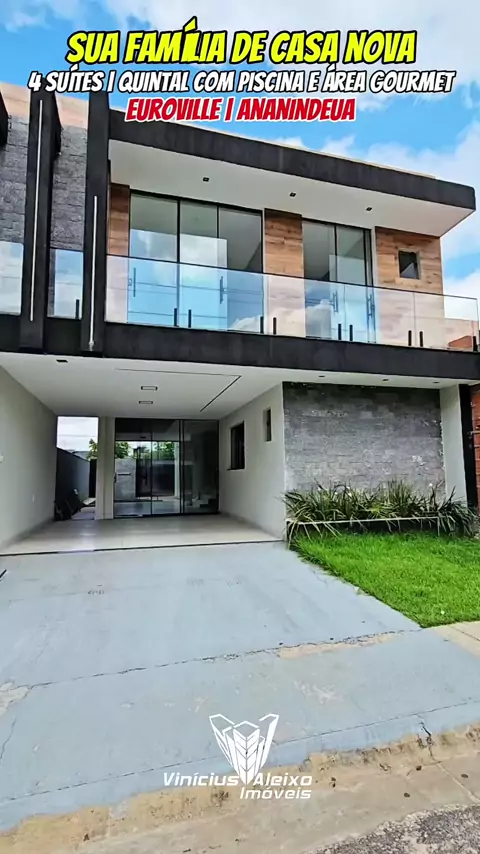 ✅VENDA NO CONDOMÍNIO EUROVILLE 🛌 4 suítes sendo 2 com closet 🚗 2 vagas de garagem 📐 220m² área construída 🍢 Quintal com piscina e área gourmet ✳️ 1º Pav. - Térreo • Sala de estar com pé direito duplo; • Sala de jantar; • Lavabo • 1 Suíte • Cozinha; • Lavanderia; • Espaço Gourmet com churrasqueira e balcão em granito • W.C Externo; • Piscina ; • área de lazer; • Garagem para 2 carros ✳️2º Pav. •3 Suítes amplas, sendo 1 Suíte Master com Close amplo, • 2 suítes com sacada com vista para