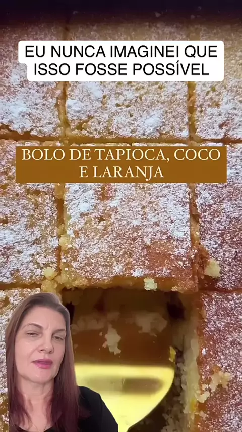 😋😋😋 Bolo de Tapioca com Coco e Laranja… Quero ver Você Feliz comendo uma fatia 👏 #bolo #tapioca #coco #laranja #Receita