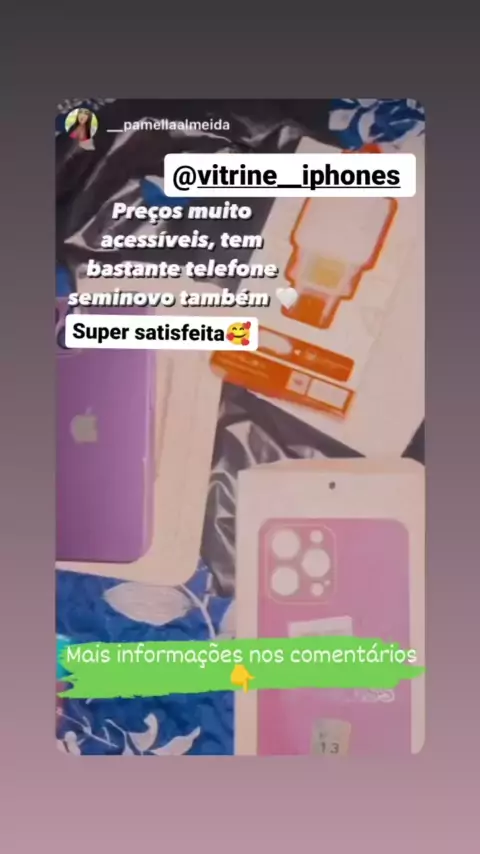 Contato de WhatsApp: 279993898783 Visite nosso Instagram: vitrine__iPhones ✅Enviamos de segunda a sexta para todo Brasil via SEDEX 🇧🇷🚚. ✅Você recebe código de rastreio no mesmo dia da postagem. ✅6 meses de garantia, direito a troca e devoluções. 🔒Aceitamos pagamentos via boleto, cartões, e transferência! 🔒 Segurança comprovada! 🔒Parcelamos até 12 vezes no cartão de crédito ou boleto