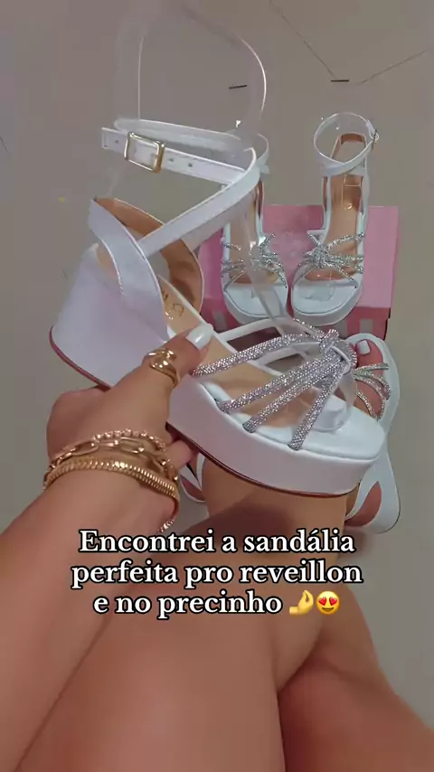 sandĂĄlia feminina salto bloco Strass brilho tiras #sandalia #moda #beleza