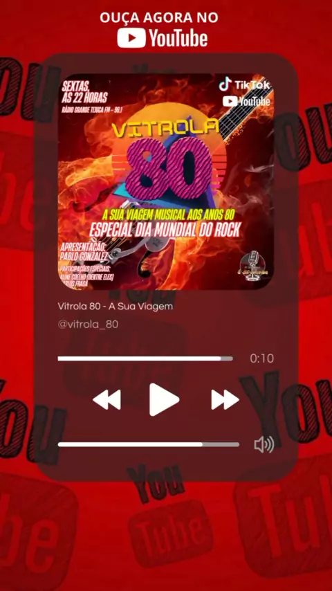 Vitrola 80 - A Sua Viagem Musical aos Anos 80! Venha relembrar grandes sucessos nacionais e internacionais dos anos 80! Todas as Sextas, ás 22 horas na Web rádio O Show Aqui é Diferente! Instagram: vitrola_80 Kwai: vitrola_80 Tik Tok: vitrola_80 Rádio O Show Aqui é Diferente: https://www.radios.com.br/aovivo/radio-o-show-aqui-e-diferente/183948 SoundClound https://on.soundcloud.com/E9hgR Spotify Rádio O Show Aqui é Diferente: https://open.spotify.com/show/7oVPgWb0vDZ63gMODhC1PS?si=3680d5